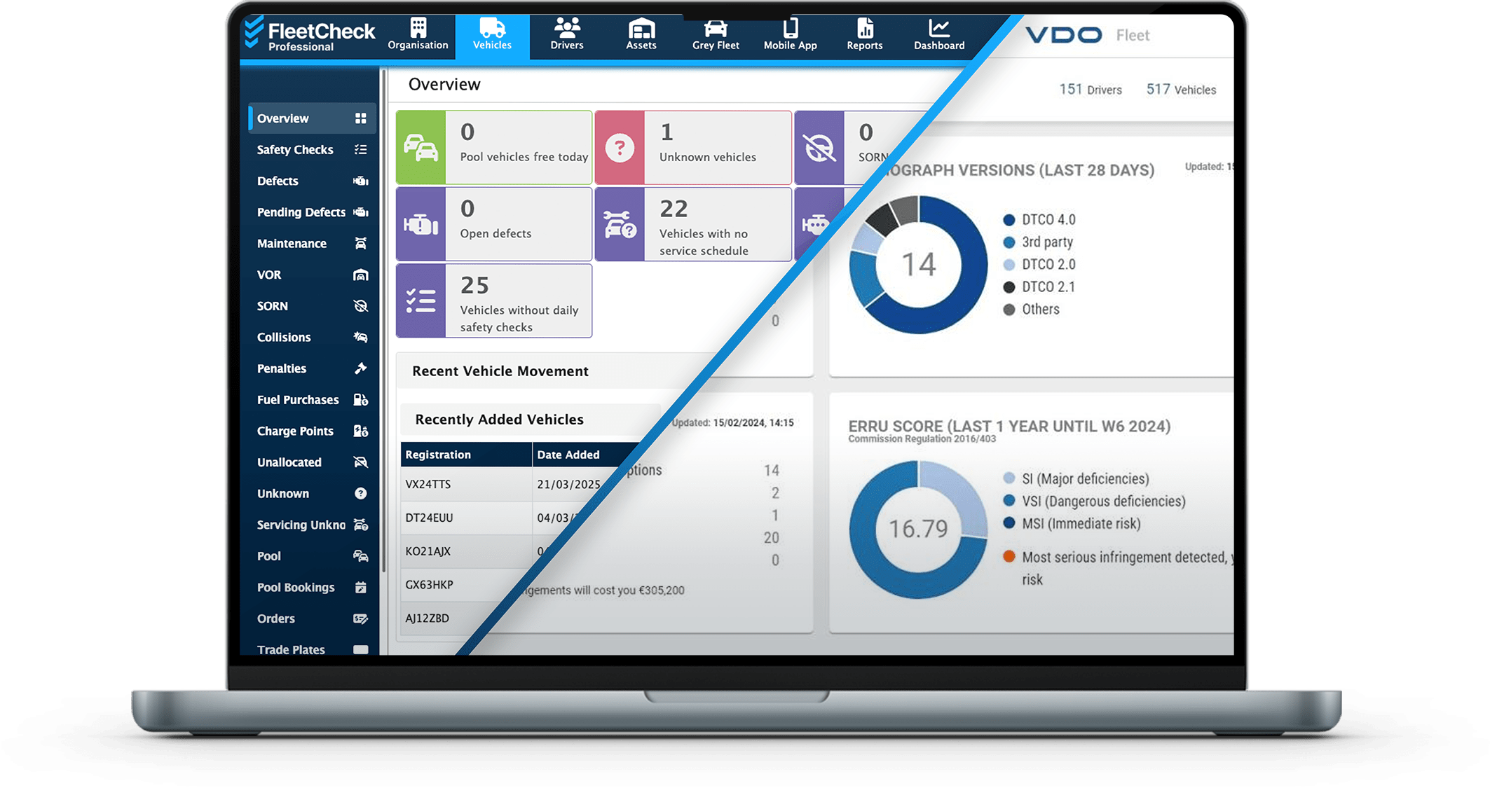 With VDO tachograph integration and FleetCheck’s intuitive analytics, you’re not just staying compliant — you’re driving smarter, safer operations.