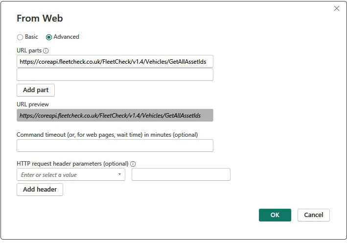 - In the URL field, enter your FleetCheck API endpoint (found in the Swagger documentation)