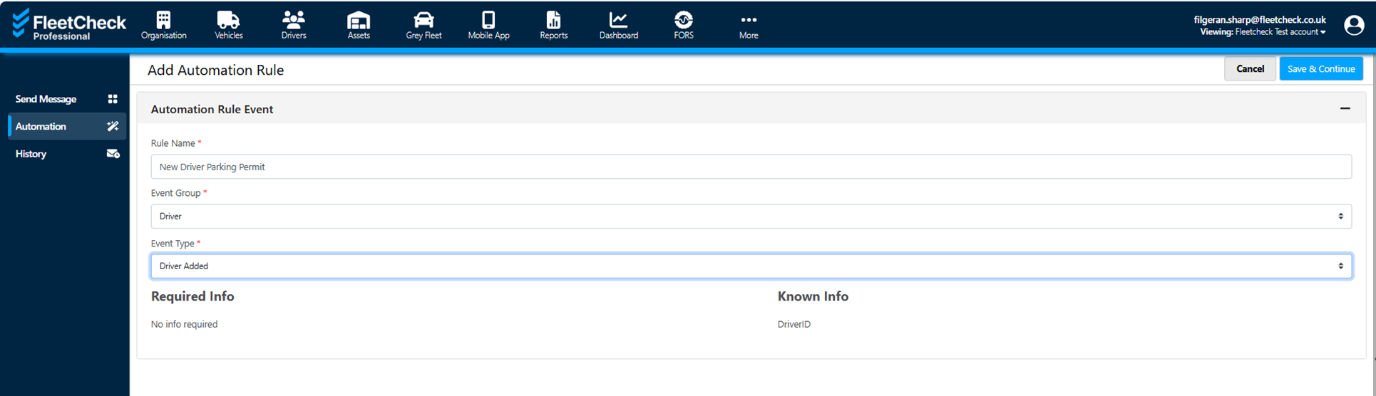 For example, a driver added or removed would be in the ‘driver’ area. Alternatively, if you want a generic email to go weekly or monthly, the area would be ‘general’.