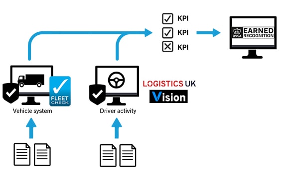 We know you appreciate the value in becoming a DVSA earned recognition operator, but how best to get there? Let us help. FleetCheck and Logistics UK have partnered together to give you the tools you need. The FleetCheck Earned Recognition dashboard is designed to give you a clear and concise overview of your vehicles adherence to the required KPI’s, and by combining this with Logistics UK’s Vision software for driver KPI’s, you can be sure of a complete and comprehensive solution.